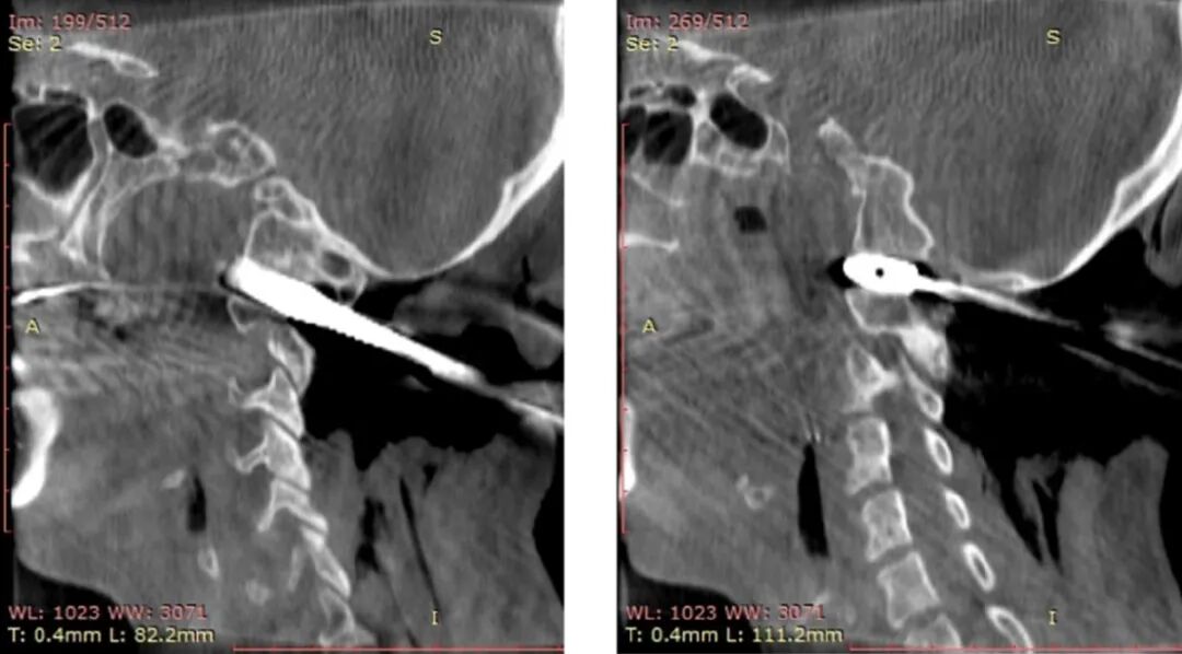 高风险型椎动脉:椎动脉走行遮挡寰枢椎关节面,在进行寰枢椎关节间撑开操作过程中,损伤椎动脉的风险较高。并进一步分为Ⅰ型、Ⅱ型和Ⅲ型危险型椎动脉。