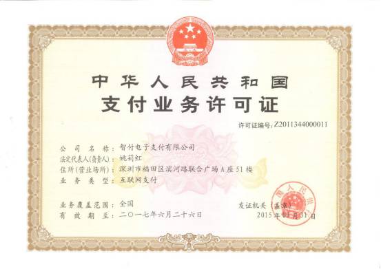 2012年6月获得中国人民银行颁发的《支付业务许可证》,拥有多年从事于支付和金融行业的专业人才,产品呈多元化发展。无论在传统的PC端,还是兴起的移动端都有对应的支付产品,满足您全方位的支付需求。