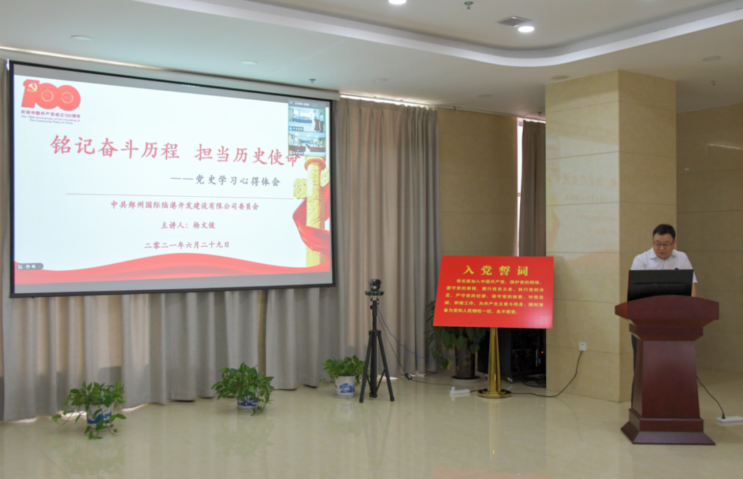 导读:为庆祝中国共产党成立100周年,扎实推进党史学习教育,6月29日下午15:00,郑州国际陆港开发建设有限公司