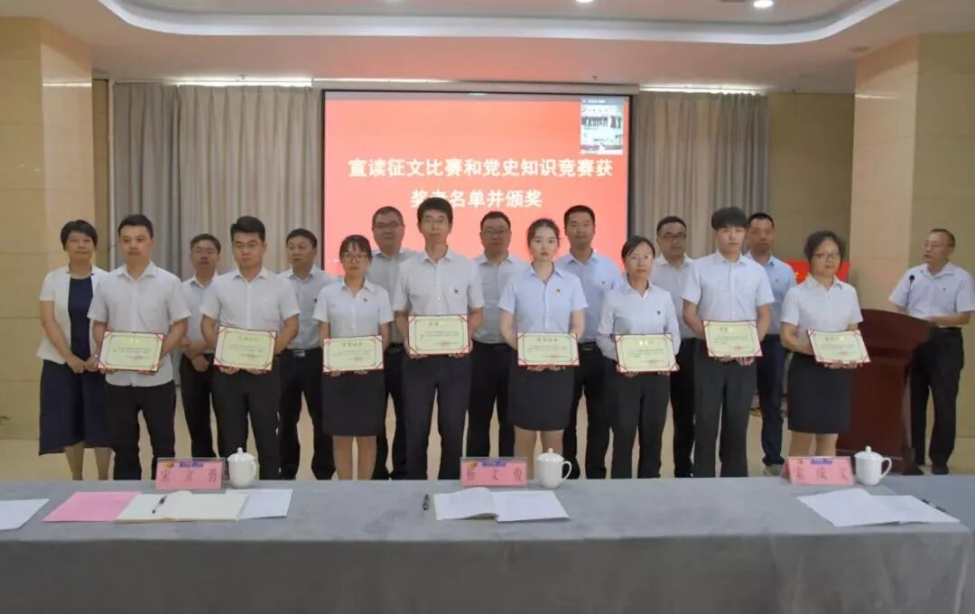 郑国强宣读征文比赛和党史知识竞赛获奖者名单,陆港党委领导班子成员及各支部书记作为颁奖嘉宾为获奖代表颁奖;在陆港党委书记的带领下,全体党员集体重温入党誓词,深刻感悟作为一名党员的初心和使命、责任和担当。同时,华宏党支部、中达党支部两名党支部书记作为代表汇报了各自党支部党史学习教育开展情况。