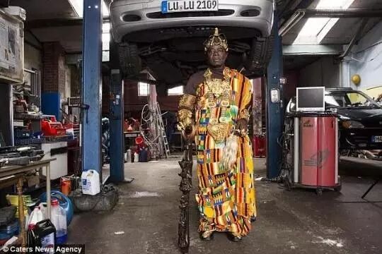 这位国王,也许是你见过的最特别的一位。他叫Céphas Bansah,他有两个身份:一个是德国的汽车修理工,另一个是非洲霍霍埃的国王……