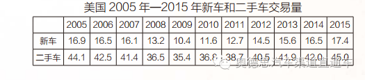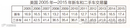 2015年美国二手车交易量达到了4500万辆,从2010年开始,美国二手车交易量就一直持续增加。自2005年以来,美国新车年销量平均为1614万辆,而二手车年交易量平均为4040万辆,且十年来美国二手车交易量每年都超过新车销售量。巨大的二手车市场规模为经销商、贷方和其他利益相关者呈现了大到无法忽视的金融机会。