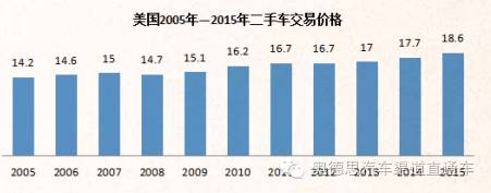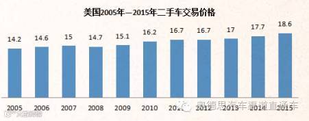 2015年美国二手车平均价格为$18,600,与2014年比,环比增长了5.1%,再创近年来历史新高。为什么二手车的平均售价会这么高?美国业界认为有两个原因:1)市场交易的二手车中有一多半是3年及3年以下车龄的车;2)市场中6年及6年以上车龄的二手车,其售价大幅度增加。虽然低的燃料成本对新型车价格有所抑制,但同时燃料价格低也重新激起人们对SUV和卡车的需求,引起这些细分市场中的车价激增。