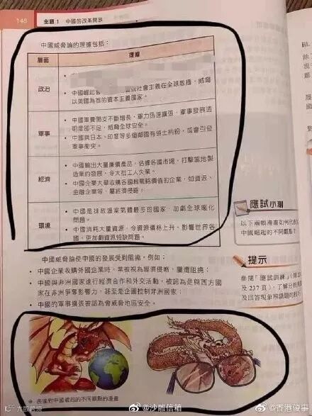 同时,由于通识科教学弹性较大,教师可凭“专业”选择或编写教材,但实际上不少材料以及考题角度欠缺中立,充满引导性;更有部分“黄师”视此为可乘之机,制作出名为“教材”的政治宣传品,煽动学生积极参与“抗争”甚至激进违法行为,令人发指。