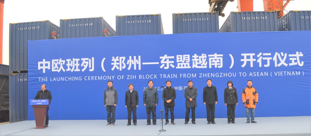 2018年12月7日上午10:00,一列满载陶瓷艺术品的郑欧班列从郑州铁路中心站出发,一路向南经广西凭祥口岸出境后抵达越南河内。郑东盟班列是郑欧班列国际物流通道向南的延伸,将深入中南半岛腹地,成为我省对接东盟经济合作区的黄金通道。