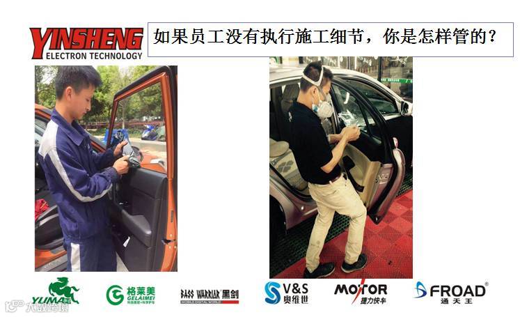 员工没有执行施工细节,你怎么管?上图是撕膜,这个在我们朋友圈看到隔壁一个店做活动,我们刚好也做活动。左图他们的员工没有戴口罩,戴口罩不是为了保护员工,戴口罩会让客户恐惧。右图是我的员工买防毒的,防核辐射都有。左图只会觉得你是在做活动,撕膜的活动。客户看了我们的图片,会觉得不换不行。太可怕了。我们整个团队成员在传播,贴膜不慎反成健康的杀手。撕掉你的膜拒绝车内毒气。这句话好得不得了,生意也好得不得了。因为我们盯着客户痛点来传播,客户痛点是什么?健康。而左图是盯着客户的钱包传播。所以有没有你们同事做活动的时候,为什么没有那么多预期销售量?你没有塑造恐惧的环境,或者这种气氛给客户感受到。