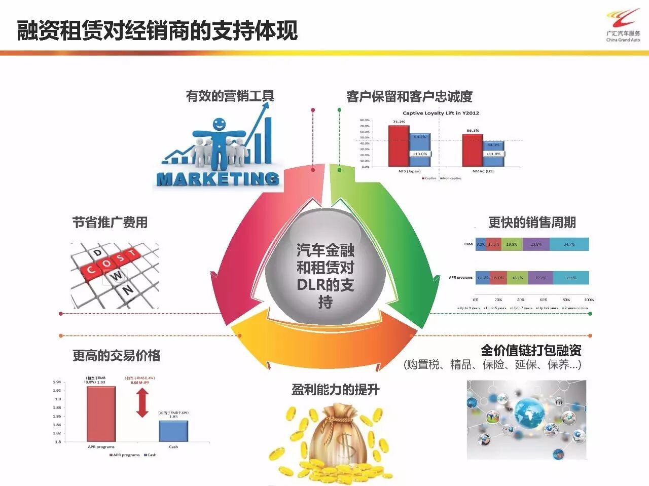 另外,我们参考日本经销商的数据,会发现通过金融和融资租赁购车的客户,终端成交价比现金购车客户平均高了4000人民币,因为贷款购车的客户群和全款购车的客户群的期望值不一样,贷款客户群更关注的是经销商是否能贷,是否能批,付多少钱才能把车开回家,而不是终端价格。由此可见,金融和融资租赁会降低客户对终端成交价值的敏感度,这是有效而显著的。这也是融资租赁业务为什么可以满足经销商的诉求,帮助经销商提升盈利能力。