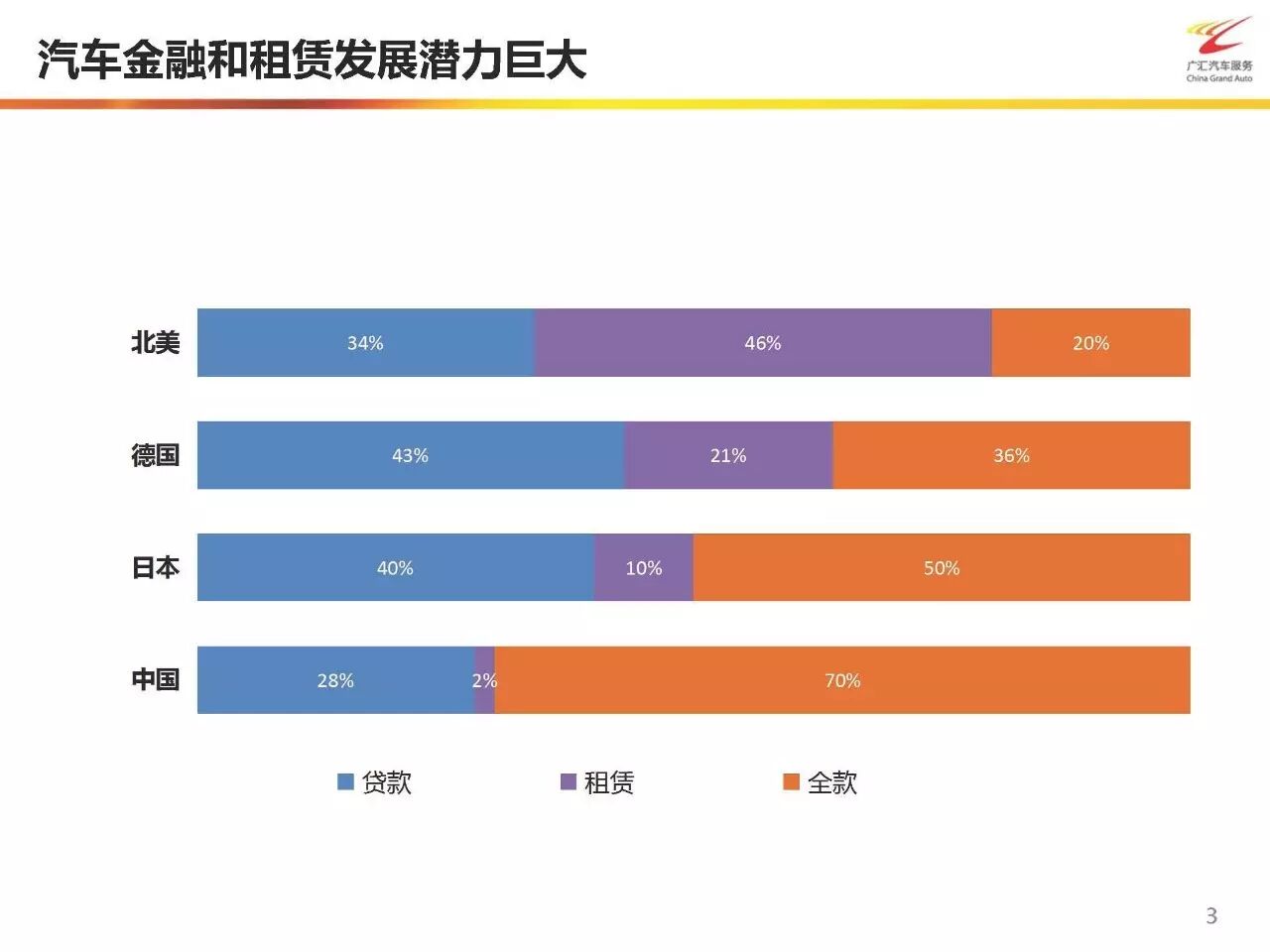 为什么这里先提到二手车?因为未来二手车的融资租赁的空间是非常大的。其实现在没有很精确的数据,我们的二手车金融和租赁渗透率,应该不到10%,这个空间非常大。汽车金融和融资租赁未来发展赖以生存的基础,就是我们车辆销量庞大的数字和庞大的业务量。