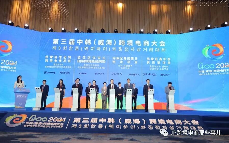 同时,洋码头日韩跨境贸易总部、速卖通韩国优选仓、希凯日韩跨境电商总部、中海川威海公共保税仓、威海市跨境电商创新协同中心等5个项目在会上举行启动仪式。
