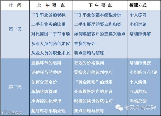 在这个“大众创业,万众创新”的年代,主动适应汽车市场的“新常态”,学习发达国家先进的经营理念、成熟的管理经验,提升自身的职业技能,把握未来市场脉搏,成为新一代汽车人成长的重要途径。为此,融致升汽车网络商学院引进了源于德国的二手车销售精英培训计划,云南首期推出了《二手车经销商提升》系列课程。
