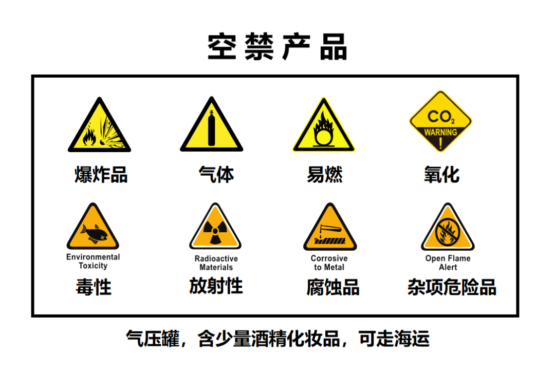 · 特点:通常因安全规定(如含大功率电池、易燃等)被航空公司拒载。