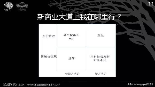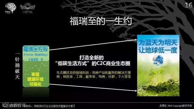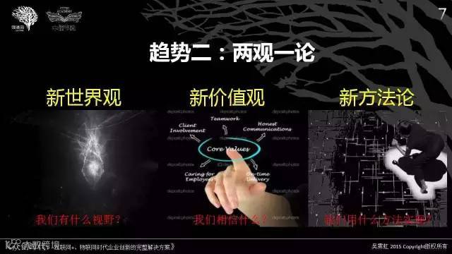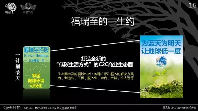 1)基于未来机遇的决策:对于个人、企业的机遇来说,2015年没有赶上的,2016年要布局;2015年以前布局了的,2016年要聚焦打磨与客户的粘性,夯实未来爆发路径。重点在于重塑人文关怀的价值主张、建立信任互助的网络连接、发展智能智慧的交互平台。