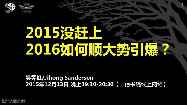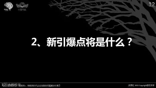 2015年就要过去了,无论我们有没有赶上这一年的大机会都已经不重要,重要的是2016年正在到来,如何能在新的一年有所作为,甚至引爆重生,这是我今天要与大家分享的主题。基于这个主题,我想至少要回答两个问题: