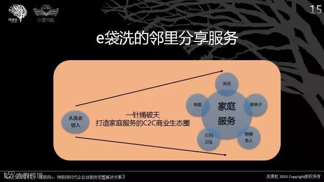 中国的e袋洗张荣耀正是在这个大背景下,虽然2013年以洗衣切入但是有十几年这个行业的供应链经验。两年后,开始进入社区家庭服务,洗鞋、高端服饰洗护、奢侈品皮具养护、居家养老服务、共享私厨等等,应有尽有,正在打造一个全新的邻里C2C商业生态圈。
