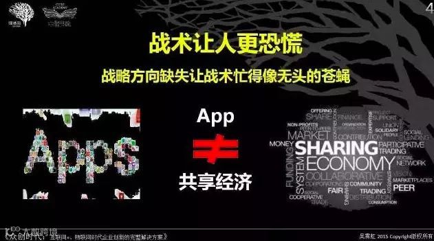 我的研究发现,很多人在战术上拼命尝试,看见Airbnb、Uber、滴滴出行、e袋洗、猪八戒等那么多商业生态圈模式成功融资后,也试图模仿,找个团队就开始做app,但这并不等于你就懂了共享经济模式。