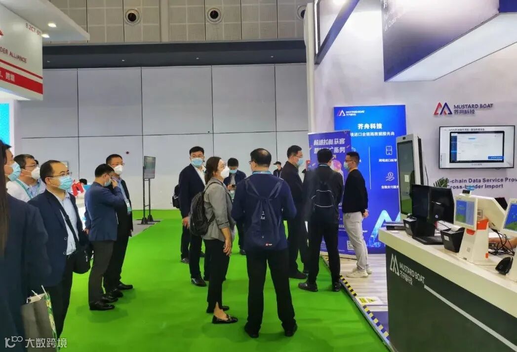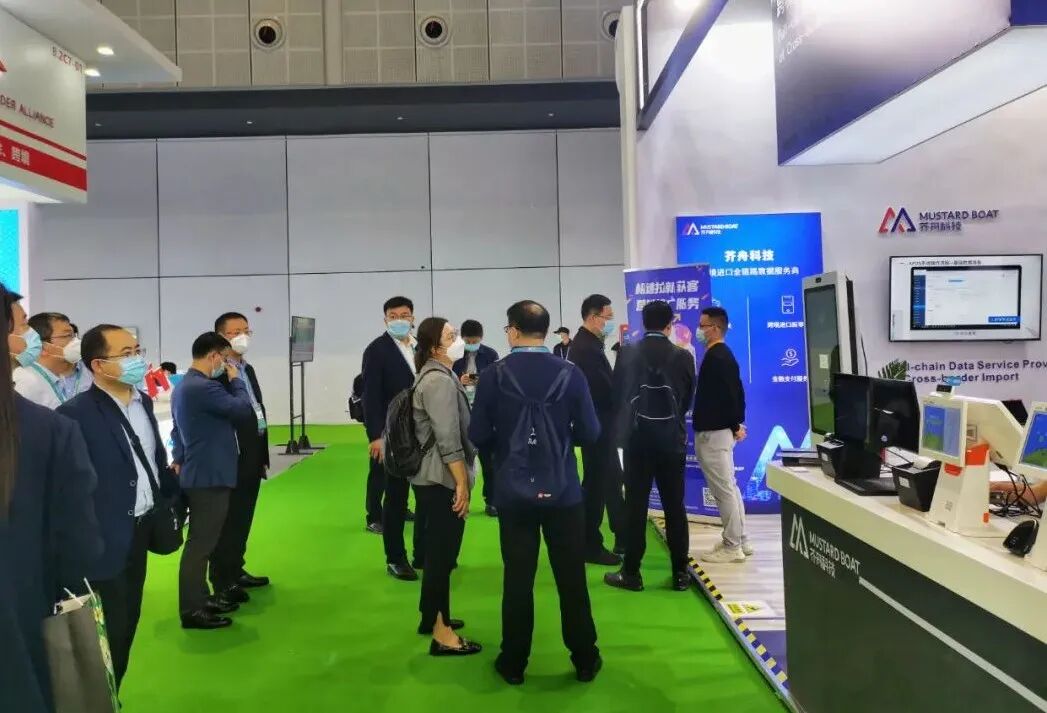 11月6日上午11时,青岛市政府代表团队一行人来到芥舟科技展位,亲切询问企业具体情况。商务经理向领导简要介绍芥舟是跨境进口全链路SaaS服务商,覆盖跨境直邮、保税、免税、一般贸易等业务场景。代表团领导表示“跨境保税仓这一块,会有合作的机会”。