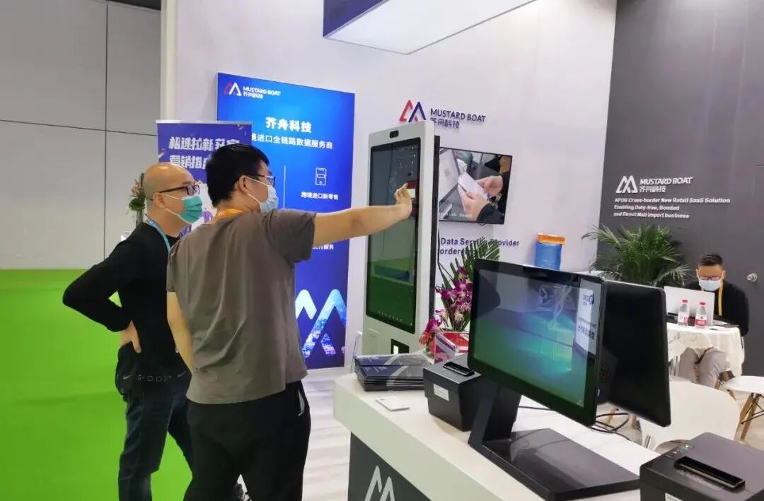 来自丹麦、埃及、澳大利亚等不同国家的外国友人到访芥舟展位,对跨境进口业务场景表现出极大兴趣,与新零售负责人相谈甚欢,为进一步的合作沟通打下基础。同时,为进博会参展观众首次推出的跨境新零售基础版大受欢迎,以优惠的价格享受高效贴心的服务,包含保税门店、保税微商城和一般贸易3个场景。此外,部分参展观众想要了解芥舟科技的营销推广业务场景,工作人员重点介绍了“拉新返佣获客模式”,以低成本的数字化裂变方式获客,提升平台以及商户销售。