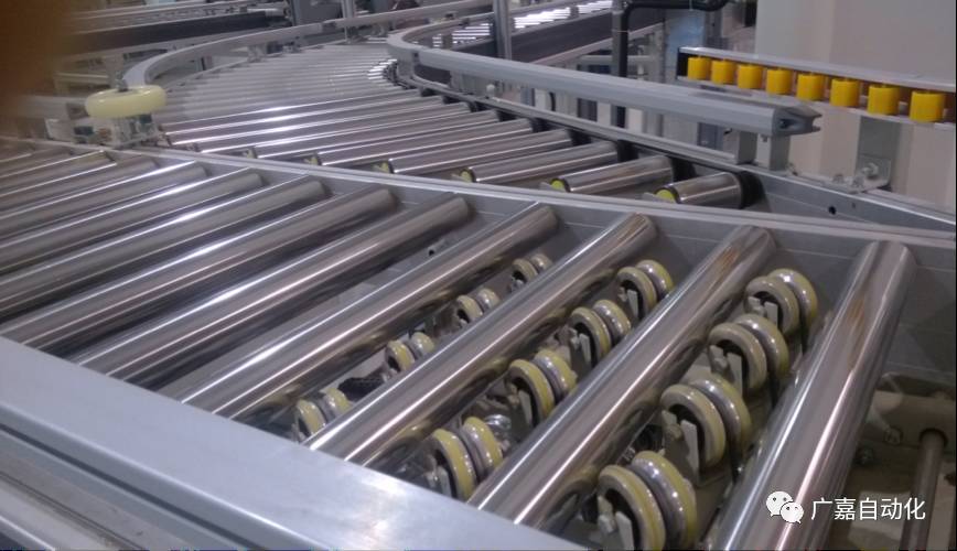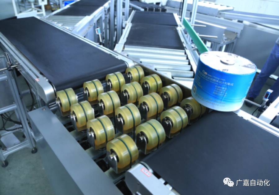 广嘉自动化最早在2010年在引进国外技术的同时,开发出了优于国内市场产品的斜导轮分拣机,根据驱动的结构和形式,分别开发出了气动斜导轮和电动斜导轮分拣机,并申请了国内专利。斜导轮分拣机适合客户中等分拣速度要求,分拣效率在每小时2000~3000件。主要通过气缸,丝杆或者电动推杆等驱动,将斜导轮顶升或改变斜导轮原有的直线运动方向,让斜导轮驱动货物超分拣目的地格口运动。