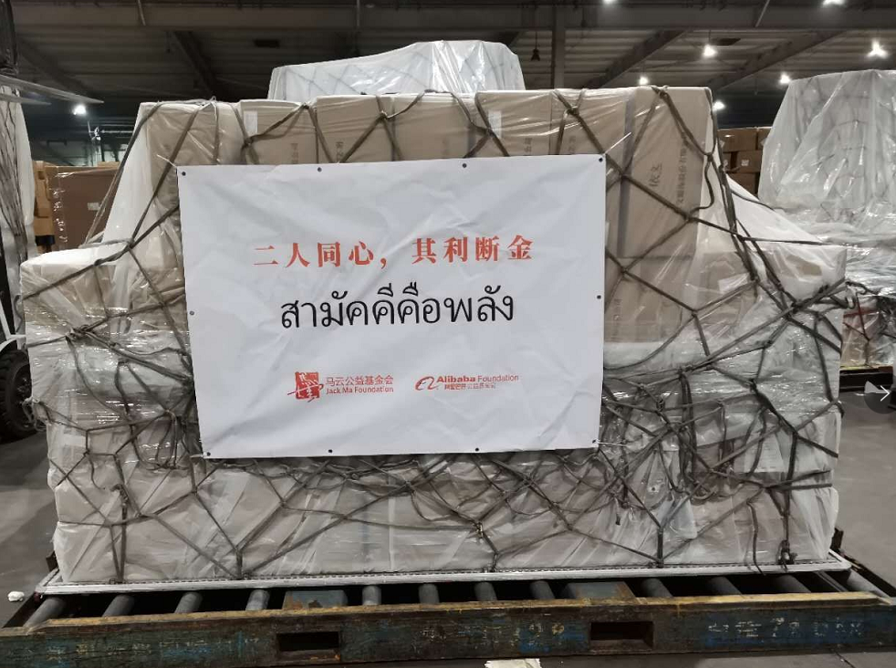 当地时间3月27日、及3月28日,阿里巴巴公益基金会所捐赠的医疗物资通过郑州-泰国嘉里包机顺利抵达泰国曼谷机场枢纽,以协助泰国对抗新冠肺炎疫情。