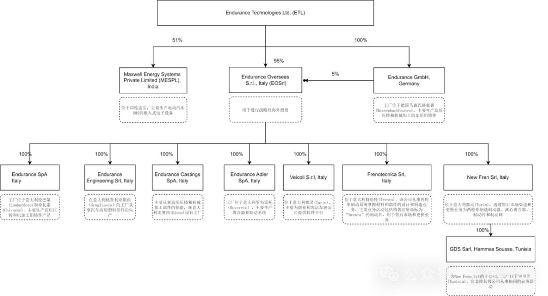 Endurance Technologies Limited(Endurance)于1985年成立,是印度最大的二轮/三轮车零部件制造商和最大的铝压铸件公司(产品主要包括合金车轮、悬架、制动系统和变速器等),并通过其在意大利和德国的子公司在欧洲开展业务。