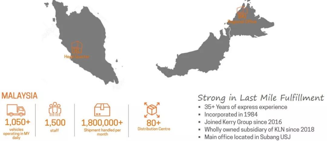 嘉里马来西亚快递(Kerry Express MY )创新提出了“最后一公里派送方案”,力求实现同城即日达、全国翌日到达服务。