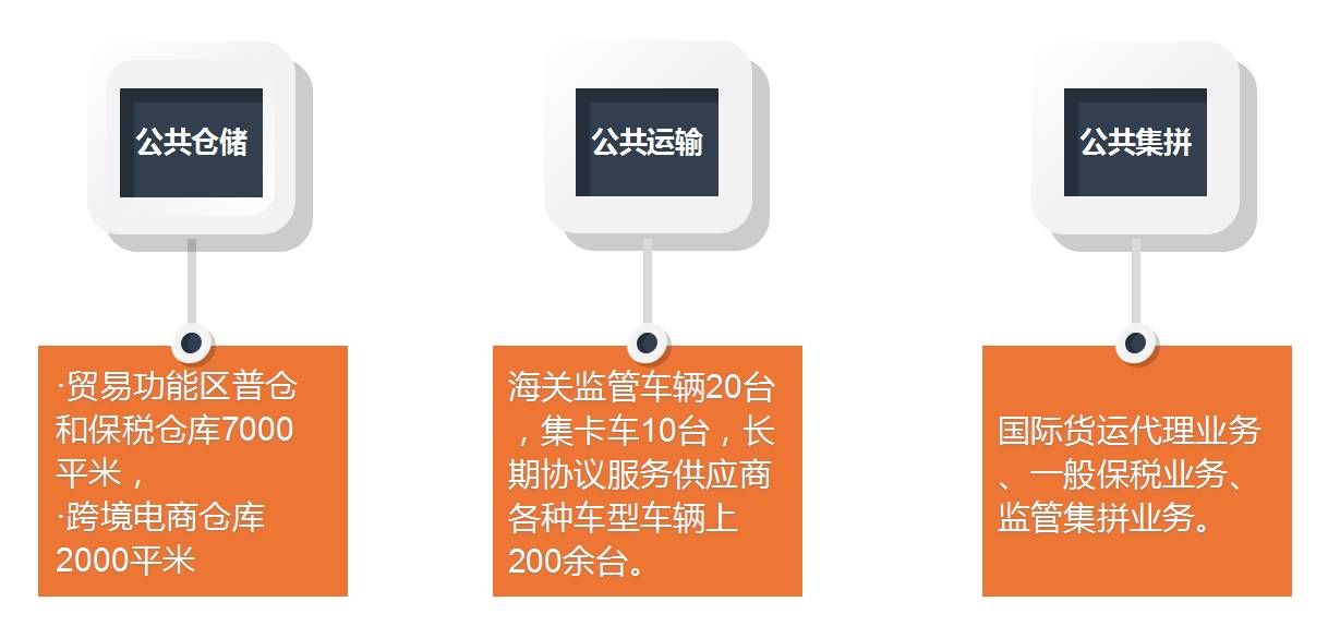 开展国际货运代理业务、一般保税业务、监管集拼业务、海关监管及普通车辆运输业务、集装箱物流配送运输业务、(普通和保税)仓储业务、国际冷链业务、供应链金融(跨境电商、一般贸易)、以及跨境电商地服等业务、拥有进口水果和进口肉类收货人资质。