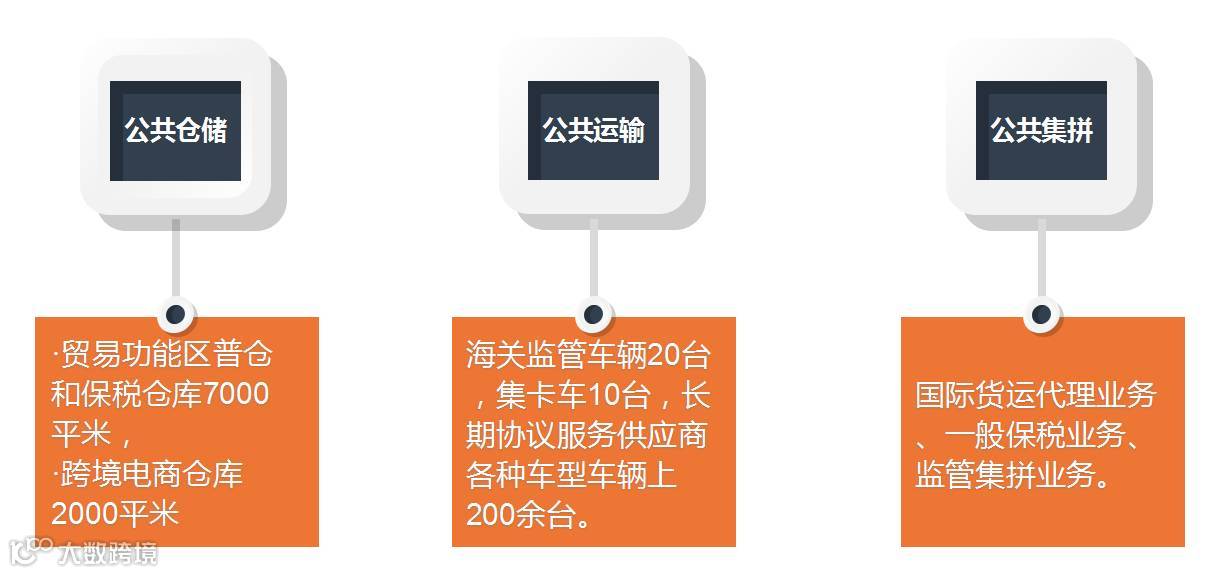 拥有一般贸易仓、保税仓、跨境电商仓,并新进供应链金融业务,根据海外仓运营的经验,在对仓库进行规范化管理并辅以高效的管理系统。