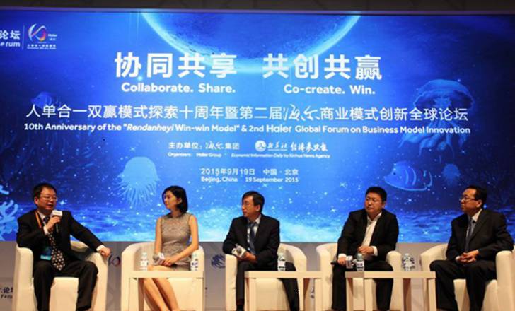 由海尔集团和新华社《经济参考报》联合主办的“协同共享共创共赢——人单合一双赢模式探索十周年暨第二届海尔商业模式创新全球论坛”在北京举行。