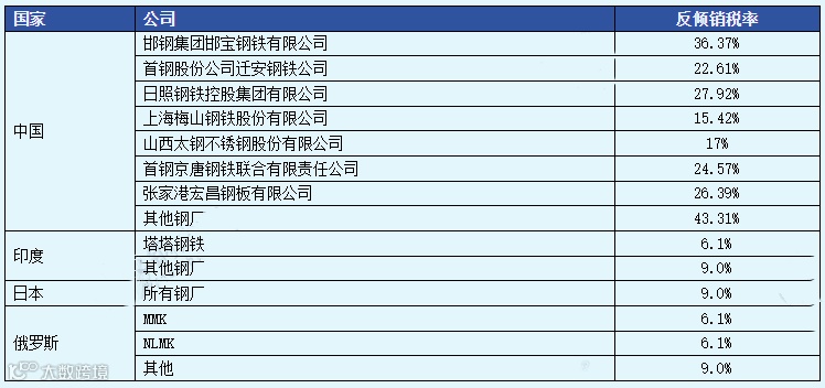 根据这一决定,对从中国进口的产品将征收15%至43%的关税,而对从俄罗斯、印度和日本进口的产品则征收6%至9%的关税。这些反倾销税将在原先对非合金热卷和合金热卷分别征收的15%和13%关税的基础上叠加执行。