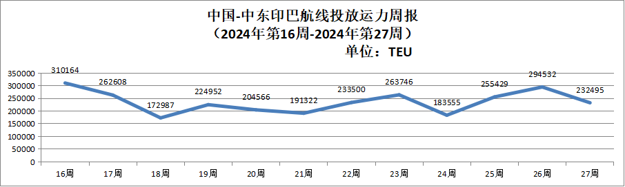 (2024年第16周-第27周)船公司主要外贸航线运力数据发布