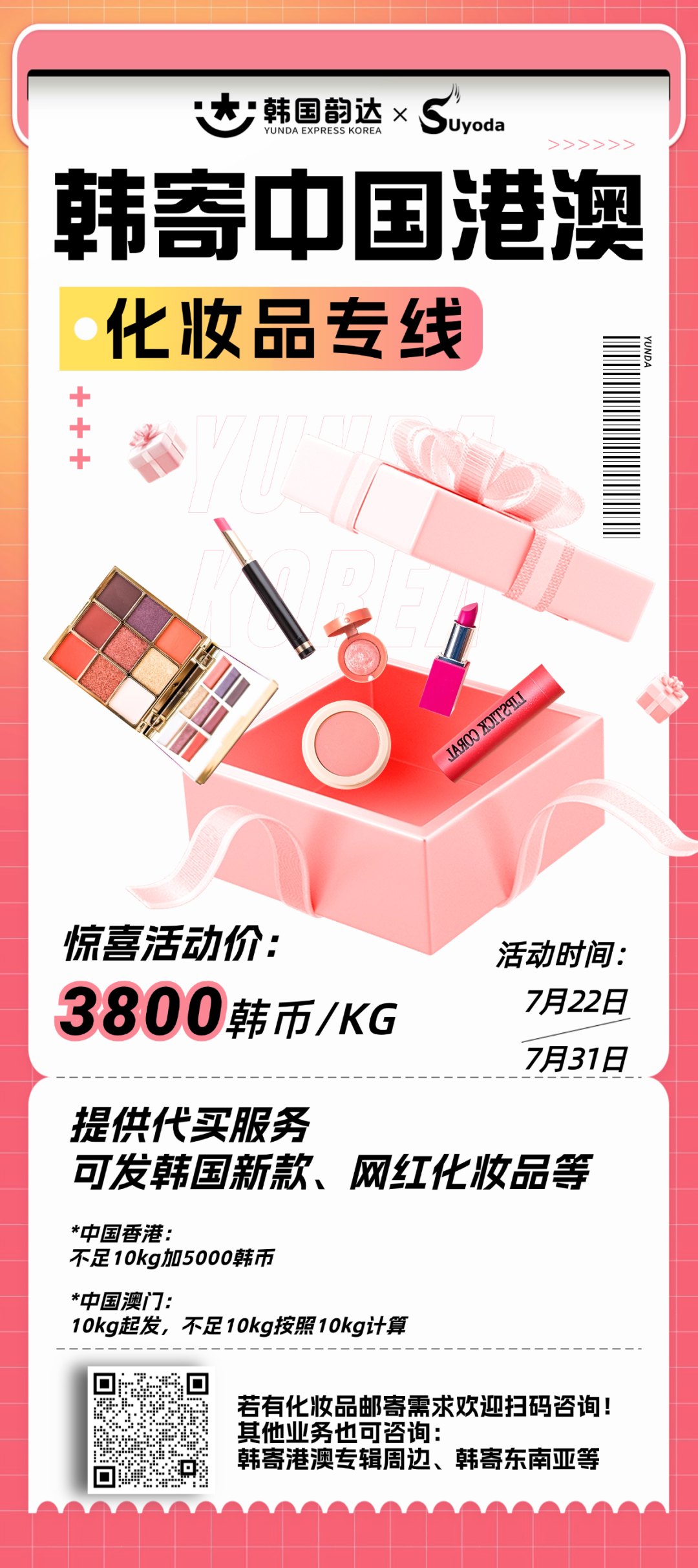 【韩到港澳】化妆品专线邮寄活动,快来参加!