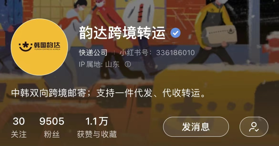 发布带热点话题配三张或三张以上取货、包裹等图片和好评笔记,并@韵达跨境转运,可享受每kg500韩元优惠,仅限前50名。