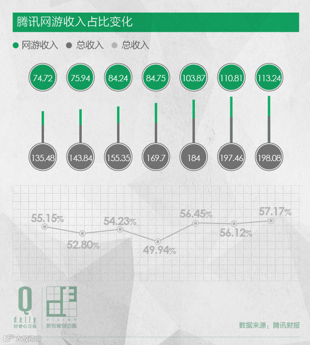 这话并不只是谦虚,从财务报表上看,腾讯目前的收入过半来自网游,且占比有增加趋势。