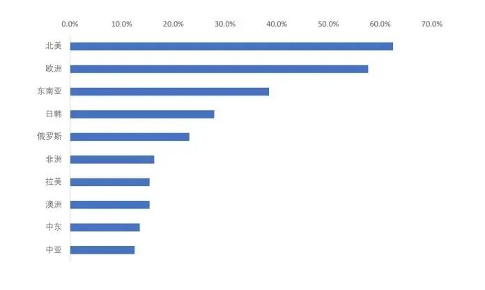 •尽管欧美仍是目前跨境电商最主要的市场,但近年来东南亚市场迅速崛起,截止2020年,已有接近四成的中国跨境电商企业进军东南亚市场,已超过日韩和俄罗斯。