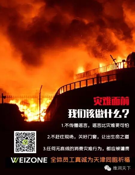 维润天下全体员工在得知此事件后,纷纷真诚地为天津同胞祈福!并呼吁广大市民在理智对待灾情发生的同时,更要懂得如何在事故中保护自己及他人。