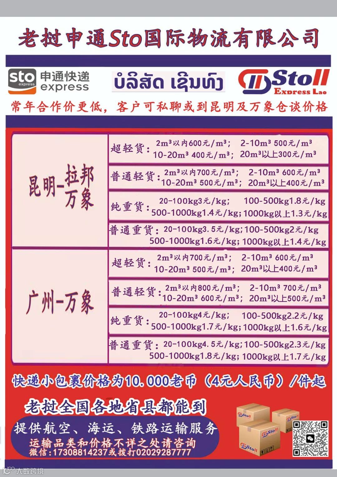 老挝申通Sto快递经营中国到老挝、老挝国内快递物流业务,老挝全境可达,万象至各省公司车辆运营,现招省级加盟商,利润可观,投资少,品牌价值大,老挝Stoll国际快递已开通广州至万象直达、昆明至琅勃拉邦直达陆运专线,计划在老挝铺设400+网点,于2023年2月1日在老挝国家正式营业,主要经营老挝本土快递快运,中国至老挝国际快递物流业务,免费招老挝全国各省县街道加盟商,网点负责承担自己门面招牌广告费即可,欢迎您的加入,联系WhatsApp:+8562029287777