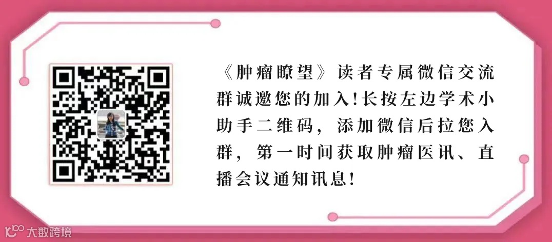 凡署名原创的文章版权属《肿瘤瞭望》所有,欢迎分享、转载。本文仅供医疗卫生专业人士了解最新医药资讯参考使用,不代表本平台观点。该等信息不能以任何方式取代专业的医疗指导,也不应被视为诊疗建议,如果该信息被用于资讯以外的目的,本站及作者不承担相关责任。
