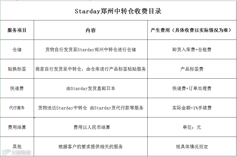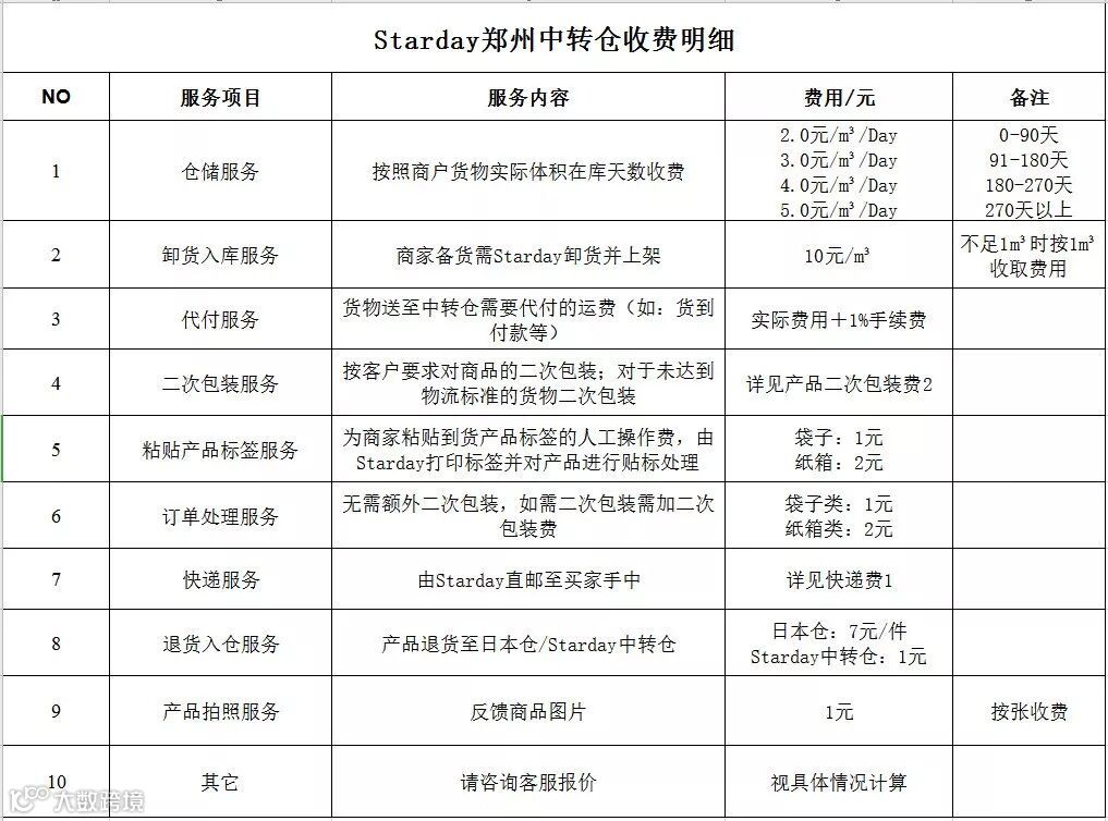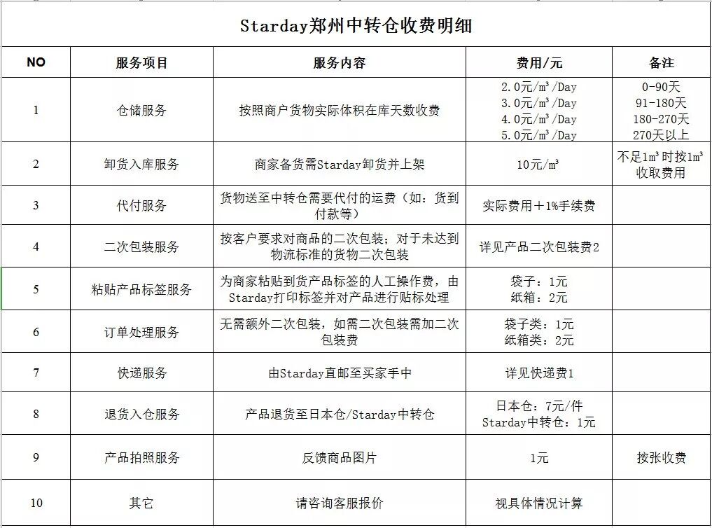 5、其它收费标准,详情请参考Starday中转仓收费标准(如下附件)。