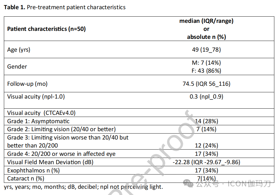 研究纳入标准为:年龄≥18岁,影像学确诊为良性视神经鞘脑膜瘤,Karnofsky Performance Status (KPS)≥70,(颅II)视神经损伤加重(功能性或形态学),并签署知情同意。