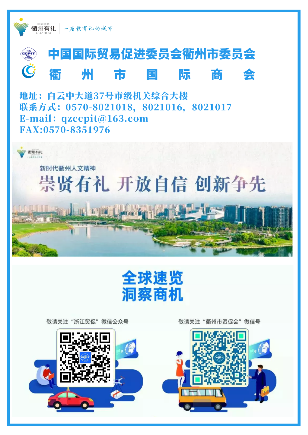 下一步,衢州市贸促会将继续发挥桥梁纽带作用,主动开展上门服务,密切关注企业需求,做精做优服务,助力企业扬帆远航。