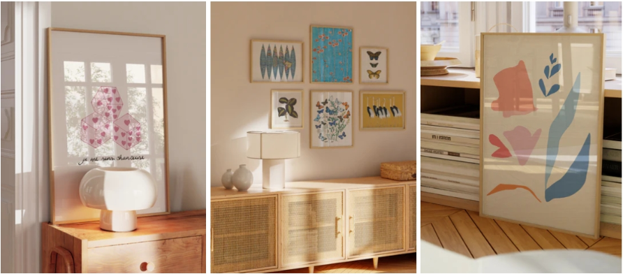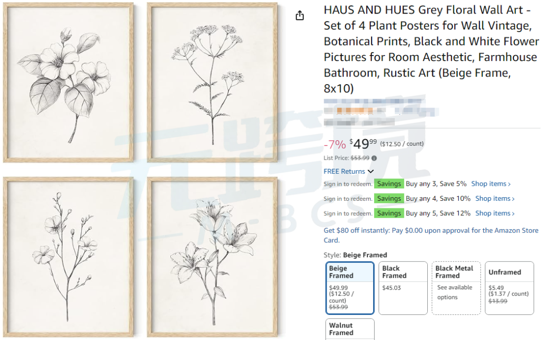 Haus and Hues 是原告 Rip Technologies LLC 旗下的艺术家居品牌,主打平价又时髦的印刷画与相框。创始团队发现市面上千篇一律的装饰品后,便推出多系列镜框与海报:胡桃木、奶油色等多种材质可选,主题横跨复古像素、笑脸符号、极简线条等,用丰富风格填满各种审美胃口。