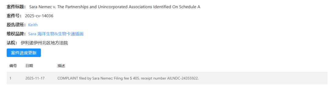 【25-cv-14036】4幅萌系科学插画突发TRO!Keith律所火速发难,速查店铺资金冻结风险