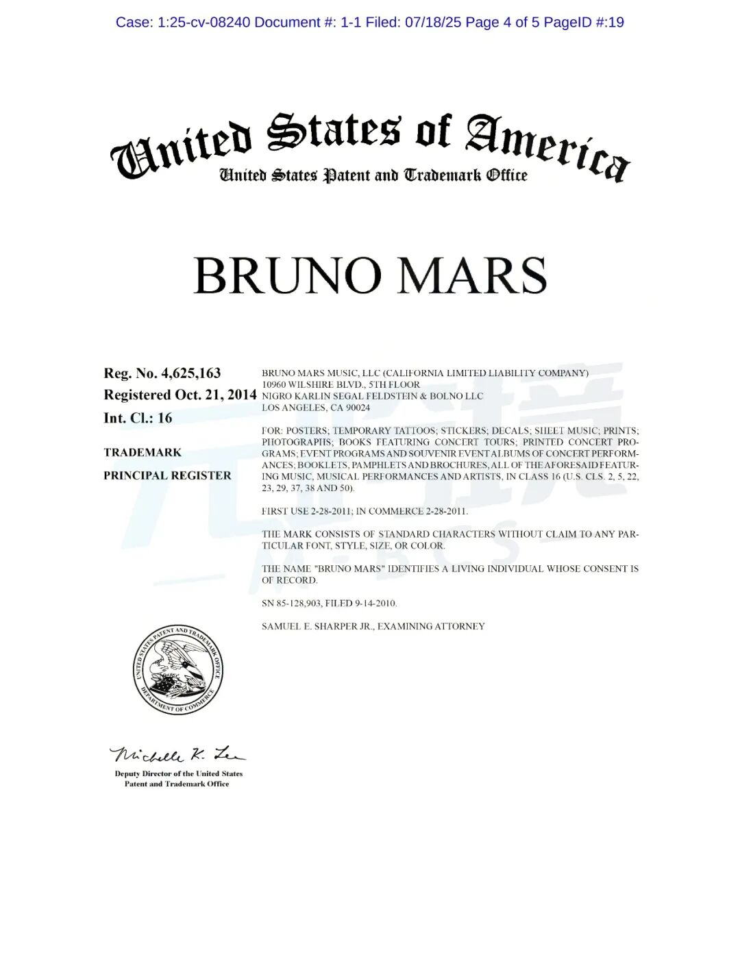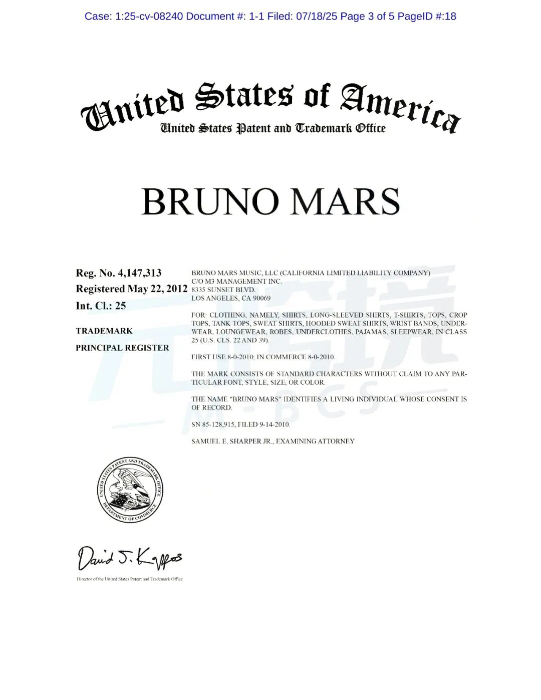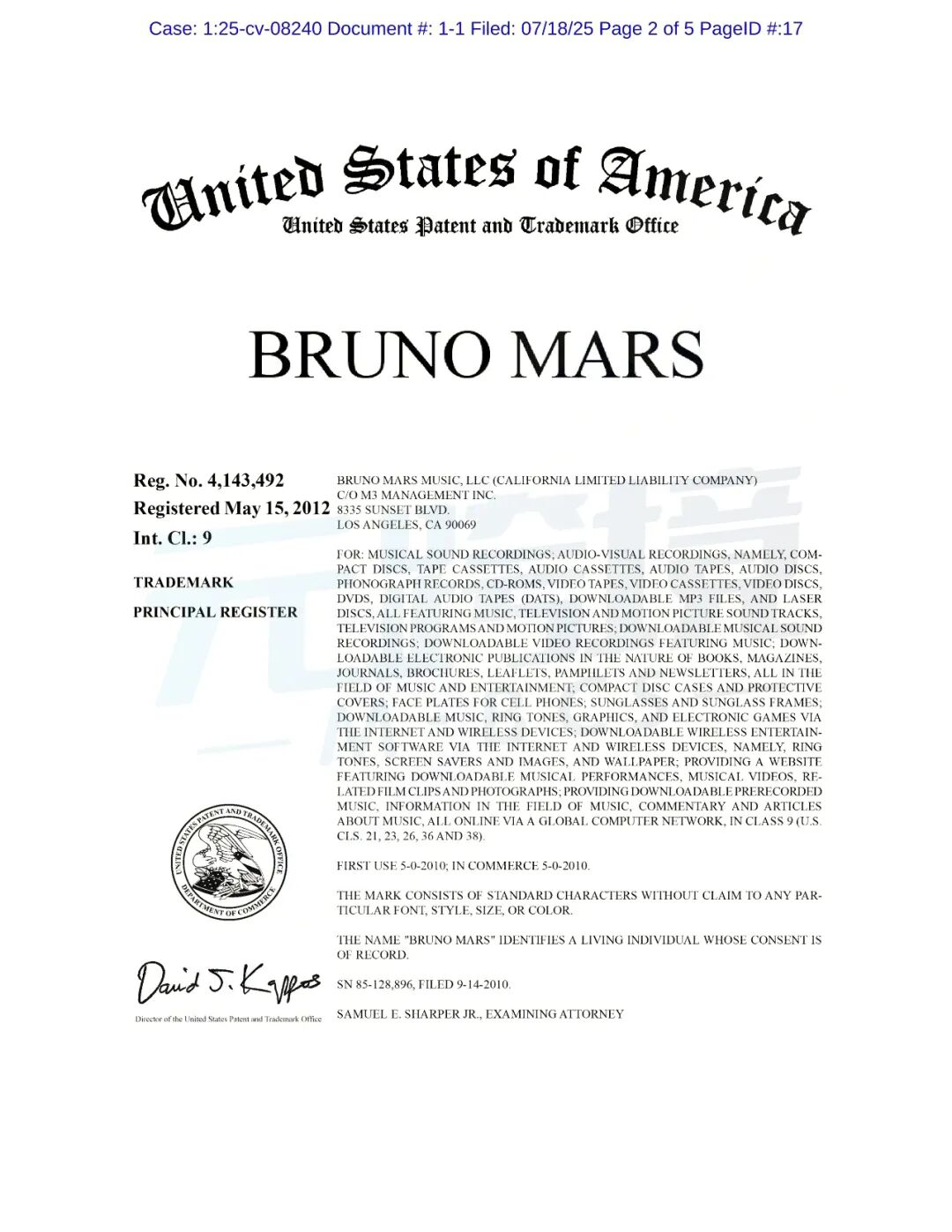 原告品牌:Bruno Mars等