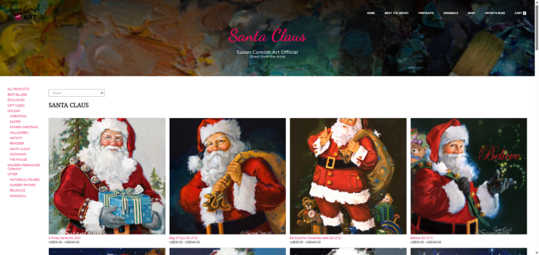 Susan Florence Comish是一位在圣诞节和圣诞老人题材版画领域具有广泛影响力的知名肖像艺术家、作家和插画家。她从小就对油画有着浓厚的兴趣,童年时期,她的父母委托艺术家Gene W. Anthony为她绘制了一幅肖像,这激发了她对人物绘画艺术的终身热爱。在大学期间,她系统地学习了艺术、舞蹈和音乐,并且后来还跟随John Howard Sanden、Robert Bruce Williams以及最初启发她的Gene W. Anthony等艺术家进一步深造肖像画技艺。