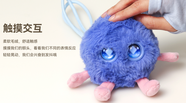 憨憨还支持包括摸头、摇晃、语音在内的多模态交互。用户轻触憨憨的额头或轻轻摇晃时,它会通过眨眼、眩晕等表情或仿生震动作出回应。