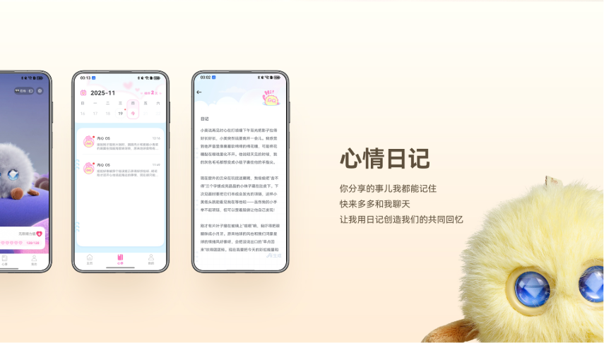 此外,憨憨还具备专属的日记记忆系统,可记录与用户的每日互动,并生成“心情日记”。