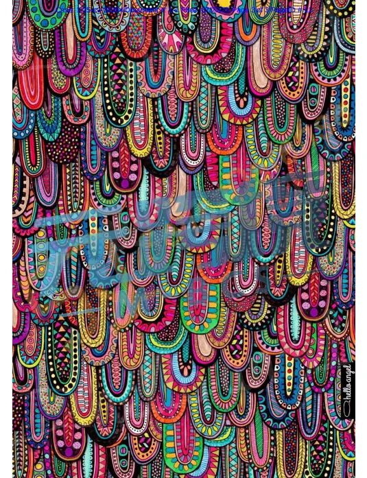 来自澳大利亚的 Angelea Clark Van Dam,以笔名 “Hello Angel” 活跃于插画界。她的作品细节繁复、色彩张扬,花卉、动物与几何纹样层层交织,构成立体而梦幻的视觉宇宙。