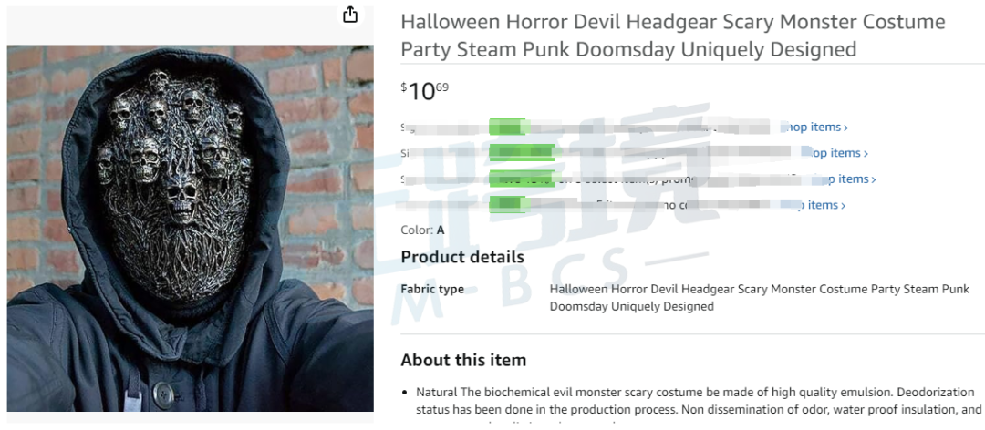 本案涉及美国版权局注册雕塑作品《Blind Masquerade Scary Face Mask with Skulls》(注册号 VA 2-445-247),跨境卖家注意不得随意使用