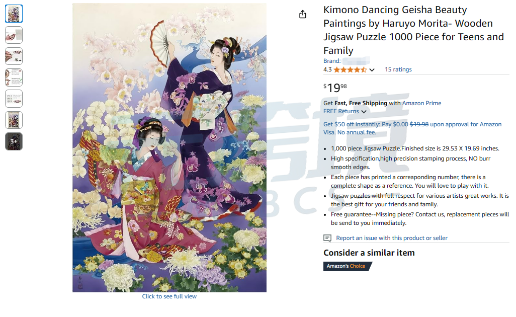 围绕歌舞伎主题,她以纤毫毕现的笔触捕捉女性优雅,色彩明丽、构图考究。与日本 Epoch、西班牙 Educa 等品牌合作的拼图因色准极高而成收藏爆款,早期版本如今已成绝版。