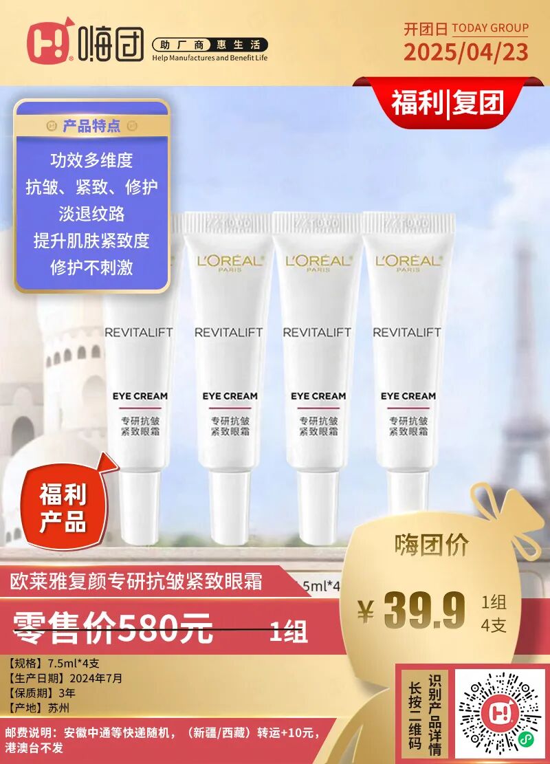 欧莱雅复颜专研抗皱紧致眼霜 39.9元1组4支‼ 推荐理由